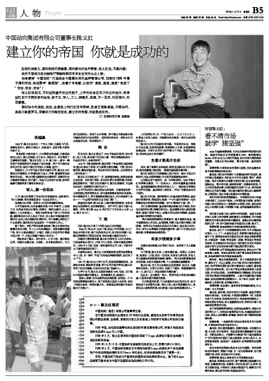 面对如今的成就,他说,生意场上和打仗没有两样,胜者王侯败者寇,不管如何,条条大路通罗马,顺着自己的路往前走,建立你的帝国,你就是成功的。