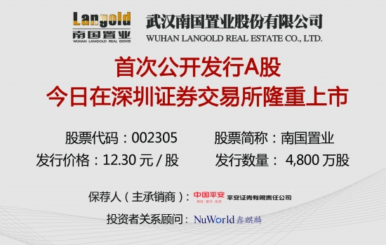 武汉南国置业股份有限公司 今日在深圳证券交易所隆重上市