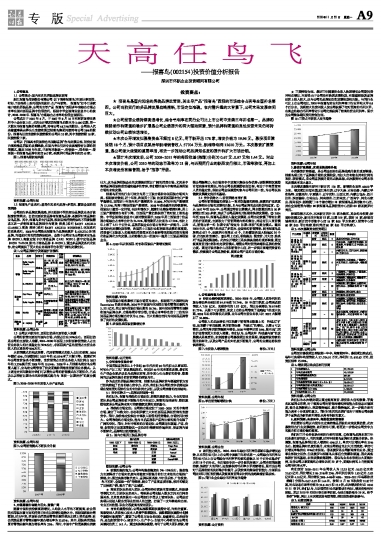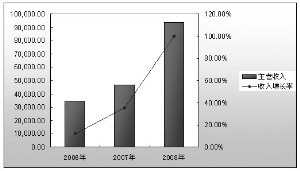 ★ 经营业绩持续高速增长。2006~2008 年,公司收入和净利润的复合增长率分别达到64.91%和70.74%。09 年前三季度,公司完成销售收入7.06 亿元,实现净利润1.03 亿元,同比分别增长26.61%和81.73%。从图7可以看到,首发上市给公司带来了战略起飞的重大机遇,2008年业务取得长足发展,当年公司主营业务收入比2007大幅增加了94.88%。