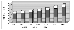 2、根据肝素原料药销售区域,2006年-2012年肝素原料药市场分布情况及预测如下: