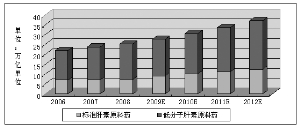 据统计和预测,全球肝素原料药销售情况如下:2008年销售量为25.4万亿单位,2006年至2008年年均复合增长率为7.67%,预计2012年需求量将达到37万亿单位,2009年至2012年年均复合增长率达到10.23%。