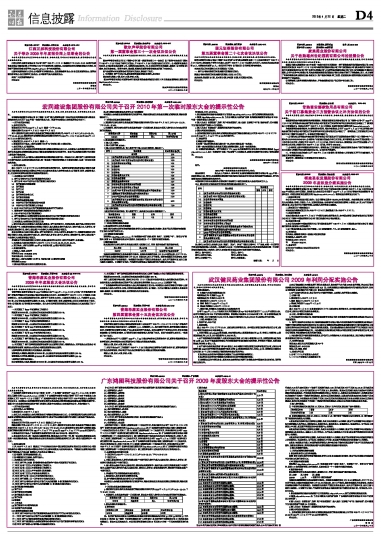 广东鸿图科技股份有限公司关于召开2009年度股东大会的提示性公告