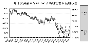 考虑交易成本时预期收益率分析。假设股票现货交易的总成本(包括交易所收费、经纪公司佣金、印花税、市场冲击成本等所有费用)为交易金额的1%,股指期货交易的总成本(包括交易所收费、经纪公司佣金、市场冲击成本等所有费用)为交易金额的0.1%,那么昨日期现套利建仓直至2010年5月21日到期交割平仓的预期收益率在-0.61%至0.85%之间,相应的年化收益率在-7.37%至10.33%之间。