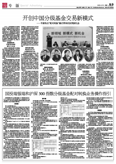 4月27日,由国投瑞银瑞和300分级指基首创的“配对转换”交易模式将正式登场。在股指期货、融资融券两大创新业务全部开通的背景之下,这一全新的交易模式将给市场带来何种新机会?投资者参与其中又该注意哪些问题?日前,在国投瑞银基金公司举办的“可交易型基金投资价值研讨会”上,国投瑞银基金公司总经理助理刘凯与银河证券基金研究总监王群航、国泰君安证券金融工程负责人蒋瑛琨、长城证券基金分析师阎红、好买基金研究中心总监乐嘉庆等一起,围绕上述问题发表了各自的观点。