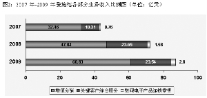 图2:2007 年-2009 年爱施德各部分业务收入比例图(单位:亿元)