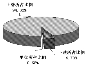 简评:在收出两颗小阳十字星之后,昨日A股市场放量大涨。两市股指早盘略微高开后窄幅整理,午后在金融地产股带动下放量走高,收盘涨幅均超过了2.7%,并双双收复5日均线。创业板指与大盘指数形成跷跷板走势,午后明显回落,日K线收出带长上影的小阳线。个股普涨,两市上涨个股占比94.62%,共13只非S、ST股报收涨停,比前日减少8只。权重股整体走强,沪市前20大权重股全线上涨,其中13只跑赢上证指数。两市合计成交1961亿元,比前日放大近4成。