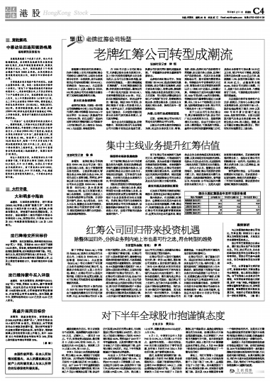 除了中移动(00941.HK)、中海油(00883.HK)这些主业突出的行业龙头外,上海实业(00363.HK)、中信泰富(00267.HK)、北京控股(00392.HK)等正在转型于专注重点业务的老牌综合性红筹公司,也都表示有备战回归A股上市的计划。事实上,红筹公司回归A股是大势所趋,而现在时机也更加成熟,这对于红筹公司和投资者或许都意味着新的机遇。