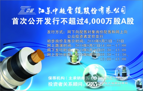 江苏中超电缆股份有限公司 首次公开发行不超过4,000万股A股