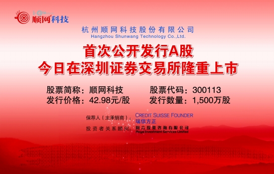 杭州顺网科技股份有限公司 首次公开发行A股今日在深圳证券交易所隆重上市