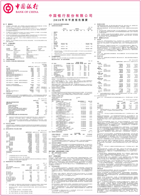 中国银行股份有限公司2010年半年度报告摘要