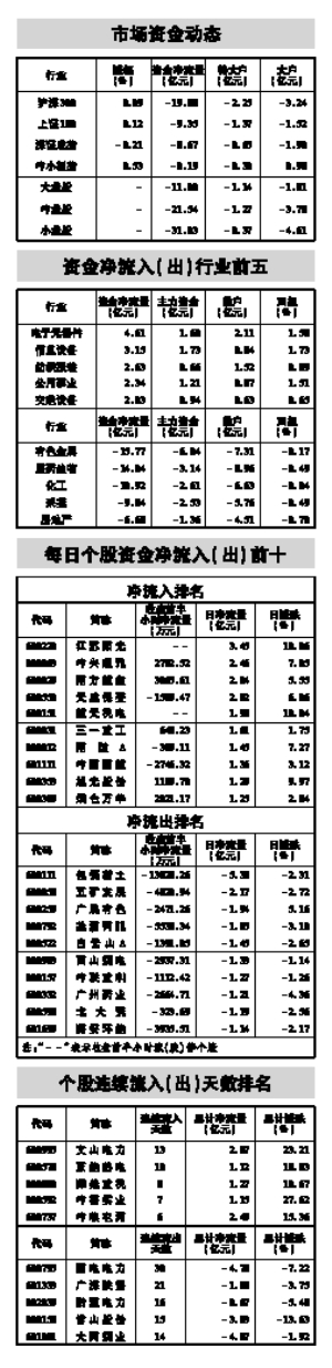 文山电力已连续13个交易日资金净流入,共流入资金2.07亿,居今日个股连续流入榜首位;国电电力已连续30个交易日资金净流出,共流出资金4.78亿,为个股连续流出榜第一。