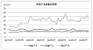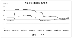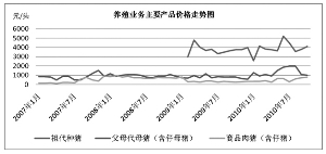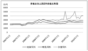 (上接D20版) 六和股份为六和集团最重要的子公司,其经营业务纳入六和集团统一管理。六和股份也同时涉及饲料生产、畜禽养殖、屠宰及肉制品加工三大类业务,但其经营重点主要集中于饲料生产业务,最近三年其饲料业务销售收入一直占六和集团饲料业务销售收入总额88%以上,并且其饲料业务销售收入占主营业务收入比例也一直保持在92%以上。 六和股份饲料生产业务的工艺流程、主要经营模式等与六和集团基本相同,具体情况请参见“二、山东六和集团有限公司的主营业务发展情况/(二)三大类主要业务具体情况/1、饲料生产业务”。 四、四川新希望农牧有限公司的主营业务发展情况 (一)主营业务整体情况 新希望农牧为新希望集团旗下除上市公司和六和集团外另一主要农牧业务平台,旗下子公司主要经营饲料生产、畜禽养殖、屠宰及肉制品加工三大类业务,致力于打造以猪产业为核心的产业一体化经营模式。 (二)三大类主要业务具体情况 1、饲料生产业务 (1)主要产品用途 新希望农牧饲料业务主要产品及用途与六和集团饲料业务相同,参见“二、山东六和集团有限公司的基本情况/(二)三大类主要业务具体情况/1、饲料生产业务/(1)主要产品用途”。 (2)工艺流程 新希望农牧饲料业务工艺流程与六和集团饲料业务基本一致,参见“二、山东六和集团有限公司的基本情况/(二)三大类主要业务具体情况/1、饲料生产业务/(2)工艺流程”。 (3)主要经营模式 新希望农牧饲料业务经营模式与六和集团饲料业务基本相同,参见“二、山东六和集团有限公司的基本情况/(二)三大类主要业务具体情况/1、饲料生产业务/(3)主要经营模式”。 (4)主要产品产销情况 ① 主要产品的产能、产量及销量情况一览表 报告期内新希望农牧饲料业务主要产品的产能、产量、销量和销售收入情况如下: ■ ■ ■ ② 主要产品销售价格变化情况 2007年1月至2010年10月新希望农牧饲料业务主要产品销售价格走势如下: ■ ③ 主要客户在新希望农牧饲料业务收入中的占比 报告期内各期新希望农牧饲料业务向前五名客户的销售收入总额及占当期饲料业务收入的比例情况如下: ■ 从以上表中数据可以看出,新希望农牧饲料业务的销售比较分散,不存在严重依赖单一客户风险或产品销售的客户集中风险。 (5)原材料和能源供应情况 ① 主要原材料和能源 新希望农牧饲料产品的成本结构中,主要原材料玉米、豆粕、菜粕及棉粕占比较大,人工及能源成本占比较小。报告期内新希望农牧饲料业务主要产品的成本构成情况如下: 单位:万元 ■ 单位:万元 ■ 单位:万元 ■ ② 主要原材料采购价格变化情况 2007年1月至2010年10月新希望农牧饲料业务主要原料采购价格走势如下: ■ 由上图可以看出,新希望饲料业务所采购的主要原料中,玉米等能量原料的价格波动幅度很小,长期看价格呈现小幅上涨趋势;而豆粕、菜粕、棉粕等蛋白原料的价格则出现大幅波动,对饲料成本影响较大,但其变化趋势与饲料价格的变化趋势基本表现一致,饲料产品成本的变化可以很好地通过饲料产品销售价格的变化向下游转嫁。 ③ 向主要供应商采购情况 报告期内各期新希望农牧饲料业务向前五名供应商采购情况如下: ■ 从以上数据可以看出,新希望农牧饲料业务的原料采购较为分散,不存在单一原材料供应商风险或原材料采购的供应商集中风险。 (6)核心技术 新希望农牧主要产品包括预混料及禽料、猪料、水产料和反刍料等全价配合饲料,其中乳猪料和反刍料兔料正处于小批量生产阶段,其余均为技术成熟产品,处于大批量生产阶段。核心技术如下表所示: ■ (7)产品质量控制情况 新希望农牧的质量控制标准有《原料标准》、《检验标准》、《质量监察管理标准》、《猪料原料及生产工艺标准》等。新希望农牧总部和旗下34家饲料公司均通过了ISO9001质量体系认证,另重庆希望饲料有限公司、淮安新希望饲料有限公司还通过了食品安全管理体系HACCP认证,总部和桂林新希望饲料有限公司通过了环境和职业健康安全管理体系审核。所有公司均有独立的品质管理部门,建有专门的技术部、品管中心和“畜禽产品质量与安全控制实验室”,各片区还建立了饲料检测中心,配置有近红外快速分析仪、氨基酸分析仪、气相色谱分析仪、液湘色谱分析仪、原子吸收分光光度计、原子荧光光度计等多种先进检测设备。2000年—2005年产品被中国质量检验协会评为“全国质量检验稳定合格产品”。“国雄牌”猪、禽、鱼系列饲料从1999年至今连续六届被评为“四川省名牌产品”,“国雄”牌猪饲料和水产饲料分别在2006年和2007年被评为中国名牌产品,新希望农牧母公司南方希望在2003、2006、2007年分别被四川省质量技术监督局评为“四川省质量管理先进企业”称号。 2、畜禽养殖业务 (1)主要产品用途 新希望农牧养殖业务专注于猪的养殖,养殖品种包括原种猪、父母代母猪及商品猪。 ■ (2)工艺流程 原种猪养殖流程:以配种、妊娠、分娩、哺乳、保育、生长测定、选种、销售形成一条龙流水式生产线。仔猪进入生长舍后进等生长发育测定,测定数据通过处理计算各项育种值和生长指数,并结和外貌评分,性能最好的部份作为自留后备猪,性能优良的部份对外出售或转入公司内部祖代场,性能差或有外貌、遗传缺陷的猪育肥作肉猪出售。 ■ 