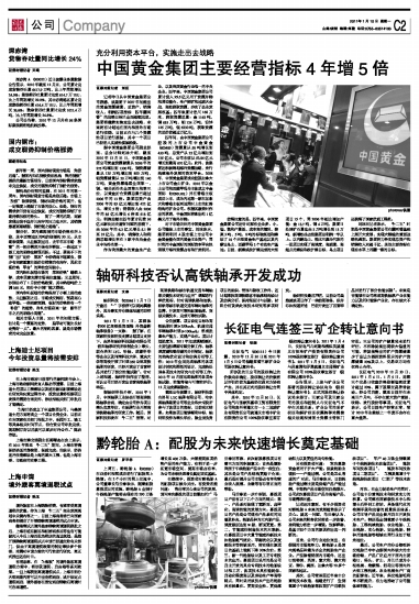 充分利用资本平台,实施走出去战略 中国黄金集团主要经营指标4年增5倍 2011-01-10 来源:证券时报网 作者:刘 征