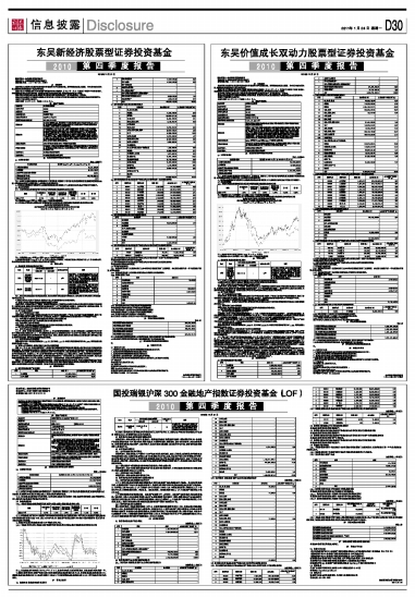 东吴价值成长双动力股票型证券投资基金2010第四季度报告2010年12月31日 2011-01-24 来源:证券时报网 作者:
