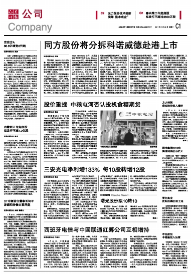 股价重挫 中粮屯河否认投机食糖期货 2011-01-24 来源:证券时报网 作者:张 珈