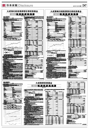 大成强化收益债券型证券投资基金2010第四季度报告2010年12月31日 2011-01-24 来源:证券时报网 作者: