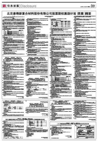 北京康得新复合材料股份有限公司股票期权激励计划(草案)摘要 2011-01-28 来源:证券时报网 作者: