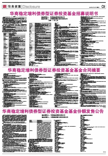【重要提示】 华商稳定增利债券型证券投资基金(以下简称“本基金”)于2011年1月6日经中国证监会证监许可【2011】16号文核准募集。 基金管理人保证招募说明书的内容真实、准确、完整。本招募说明书经中国证监会核准,但中国证监会对本基金募集的核准,并不表明其对本基金的价值和收益做出实质性判断或保证,也不表明投资于本基金没有风险。 基金管理人依照恪尽职守、诚实信用、谨慎勤勉的原则管理和运用基金财产,基金管理人不保证基金一定盈利,也不保证最低收益。基金的过往业绩并不预示未来表现。 本基金投资于证券市场,基金净值会因为证券市场波动等因素产生波动,投资者在投资本基金前,应全面了解本基金的产品特性,充分考虑自身的风险承受能力,理性判断市场,对认购基金的意愿、时机、数量等投资行为作出独立决策,获得基金投资收益,亦承担基金投资中出现的各类风险,包括:因整体政治、经济、社会等环境因素对证券价格产生影响而形成的系统性风险,个别证券特有的非系统性风险,由于基金投资人连续大量赎回基金产生的流动性风险,基金管理人在基金管理实施过程中产生的基金管理风险,本基金的特定风险,等等。 投资有风险,投资者在进行投资决策前,请仔细阅读本基金的《招募说明书》及《基金合同》。 一、绪 言 本招募说明书依据《中华人民共和国证券投资基金法》(以下简称“《基金法》”)、《证券投资基金运作管理办法》(以下简称“《运作办法》”)、《证券投资基金销售管理办法》(以下简称“《销售办法》”)、《证券投资基金信息披露管理办法》(以下简称“《信息披露办法》”)、其他有关规定及《华商稳定增利债券型证券投资基金基金合同》(以下简称“本基金合同”或“基金合同”)编写。 本招募说明书阐述了华商稳定增利债券型证券投资基金的投资目标、策略、风险、费率等与投资人投资决策有关的必要事项,投资人在作出投资决策前应仔细阅读本招募说明书。 本基金管理人承诺本招募说明书不存在任何虚假记载、误导性陈述或者重大遗漏,并对其真实性、准确性、完整性承担法律责任。 本基金是根据本招募说明书所载明资料申请募集的。本基金管理人没有委托或授权任何其他人提供未在本招募说明书中载明的信息,或对本招募说明书作出任何解释或者说明。 本招募说明书根据本基金的基金合同编写,并经中国证监会核准。基金合同是约定基金当事人之间权利、义务的法律文件。基金投资人自依基金合同取得基金份额,即成为基金份额持有人和本基金合同的当事人,其持有基金份额的行为本身即表明其对基金合同的承认和接受,并按照《基金法》、基金合同及其他有关规定享有权利、承担义务;基金投资人欲了解基金份额持有人的权利和义务,应详细查阅《基金合同》。 二、释 义 在本招募说明书中,除非文义另有所指,下列词语具有以下含义:
