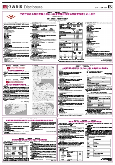 证券代码:000816 证券简称:江淮动力 公告编号:2011-011 江苏江淮动力股份有限公司2011年度配股股份变动及获配股票上市公告书(江苏省盐城市环城西路213号) 2011-02-17 来源:证券时报网 作者: