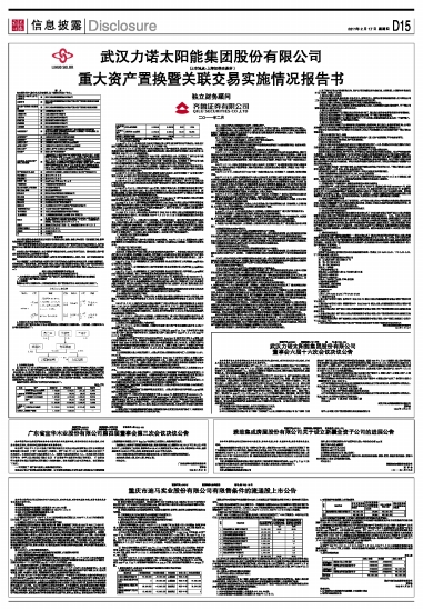 武汉力诺太阳能集团股份有限公司重大资产置换暨关联交易实施情况报告书(上市地点:上海证券交易所) 2011-02-17 来源:证券时报网 作者: