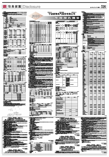 宁波新海电气股份有限公司2010年度报告摘要 2011-03-08 来源:证券时报网 作者: