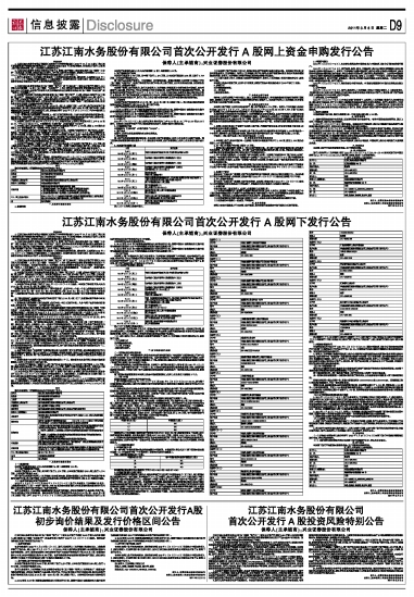 江苏江南水务股份有限公司首次公开发行A股投资风险特别公告