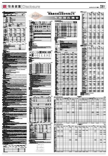 海南康芝药业股份有限公司2010年度报告摘要