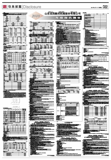 山东法因数控机械股份有限公司公告(系列) 2011-03-11 来源:证券时报网 作者: