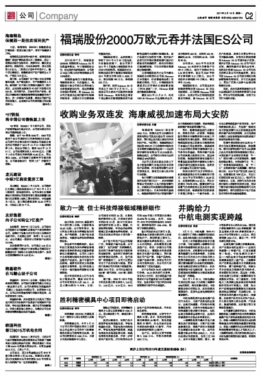 福瑞股份2000万欧元吞并法国ES公司
