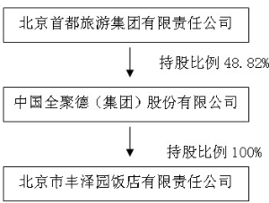 证券代码:002186 证券简称:全聚德 公告编号:2011-10 中国全聚德(集团)股份有限公司关联交易公告 本公司及董事会全体成员保证信息披露内容的真实、准确和完整,没有虚假记载、误导性陈述或重大遗漏。 一、关联交易概述 (一)本次关联交易的主要内容 公司全资子公司北京市丰泽园饭店有限责任公司为进一步提升效益水平,盘活丰泽园饭店的客房业务,经多方考察,认真选择,拟将饭店客房部分共计建筑面积3560平方米的房屋、场地及附着在该房产上的设备设施整体出租给北京欣燕都酒店连锁有限公司,由北京欣燕都酒店连锁有限公司对该部分租赁房屋进行酒店经营。 2011年3月11日,经公司五届十一次董事会审议通过,北京市丰泽园饭店有限责任公司与北京欣燕都酒店连锁有限公司签署《房屋租赁合同》。 (二)交易各方的关联关系 公司全资子公司北京市丰泽园饭店有限责任公司与中国全聚德(集团)股份有限公司及北京首都旅游集团有限责任公司的股权关系为: ■ 北京欣燕都酒店连锁有限公司(以下简称欣燕都)隶属于北京首都旅游国际酒店集团有限公司(以下简称首旅酒店集团),是北京首都旅游集团有限责任公司旗下经济型酒店连锁经营企业。三者之间的股权关系为: ■ 北京欣燕都酒店连锁有限公司的股权结构为:北京首都旅游国际酒店集团有限公司投资金额4330万元,所占比例为86.6%,北京市旅店公司投资金额670万元,所占比例为13.4%。 本次交易构成了公司的关联交易。 (三)董事会审议关联交易的表决情况 2011年3月11日,公司五届十一次董事会审议了《关于公司全资子公司北京市丰泽园饭店有限责任公司与北京欣燕都酒店连锁有限公司签订房屋租赁合同的议案》,关联董事王志强先生回避表决,其余7名董事以7票同意、0票反对、0票弃权审议通过了此项议案。 公司三位独立董事郭国庆先生、王茹芹女士、徐经长先生对本次关联交易均进行了事前认可,并发表了同意公司实施该关联交易的独立董事意见。 二、关联方基本情况 公司名称:北京欣燕都酒店连锁有限公司 企业性质:有限责任公司 注册地点:北京市西城区新街口南大街44号 办公地点:北京市西城区新街口南大街44号 法定代表人:张灏 注册资本:5000万元 税务登记证号码:110102739355010 主营业务:住宿、餐饮等 主要股东: 北京首都旅游国际酒店集团有限公司投资金额4330万元,所占比例86.6%,北京市旅店公司投资金额670万元,所占比例13.4%。 近三年经营状况: 2008年:收入7552万元,其中客房收入6818万元,餐饮收入102万元,利润总额235万元。 2009年:收入9299万元,其中客房收入8193万元,餐饮收入322万元,利润总额249万元。 2010年:收入11139万元,其中:客房收入9733万元,餐饮收入538万元。利润总额552万元。 2010年末资产总额9484万元,负债3543万元,企业净资产5941万元。 关联关系说明图 ■ 三、关联交易标的基本情况 (一)标的资产概况 租赁房屋所在建筑物坐落于北京市宣武区珠市口西大街83号、北京市丰泽园饭店有限责任公司所在地。租赁范围建筑面积3560平方米,包括一层东大厅、中控室,三至六层全部建筑和楼顶,以及与出租房屋使用有关的附属通道、楼梯、设施、楼顶平台等。租赁期限为十五年零四个月。租金标准为第一租赁年度至第三个租赁年度的年租金为人民币300万元;第四至第六个租赁年度的年租金为人民币309万元;第七至第九个租赁年度的年租金为人民币318.27万元;第十至第十二个租赁年度的年租金为人民币327.82万元;第十三至第十五个租赁年度的年租金为人民币337.65万元。 合同生效十五个工作日之内,北京欣燕都酒店连锁有限公司向北京市丰泽园饭店有限责任公司支付定金20万元;双方进行租赁房屋场地设施交接后十个工作日内,北京欣燕都酒店连锁有限公司向北京市丰泽园饭店有限责任公司支付第一个租赁年度的半年租金150万元(定金折抵租金)。之后,租金按季预交(季度租金等于该年度租金总额除以四),于每个租赁季度开始前5日支付下一个租赁季度租金。 四、交易的定价政策及定价依据 公司以市场为导向,遵循公开、公平、公正的原则,依据市场公允价格确定交易价格。 五、交易协议的主要内容 租赁期限为十五年零四个月。租金标准为第一租赁年度至第三个租赁年度的年租金为人民币300万元;第四至第六个租赁年度的年租金为人民币309万元;第七至第九个租赁年度的年租金为人民币318.27万元;第十至第十二个租赁年度的年租金为人民币327.82万元;第十三至第十五个租赁年度的年租金为人民币337.65万元。 合同生效十五个工作日之内,北京欣燕都酒店连锁有限公司向北京市丰泽园饭店有限责任公司支付定金20万元;双方进行租赁房屋场地设施交接后十个工作日内,北京欣燕都酒店连锁有限公司向北京市丰泽园饭店有限责任公司支付第一个租赁年度的半年租金150万元(定金折抵租金)。之后,租金按季预交(季度租金等于该年度租金总额除以四),于每个租赁季度开始前5日支付下一个租赁季度租金。 合同经双方授权代表签字并加盖双方公章后生效。 六、交易目的和对上市公司的影响 公司作为北京首都旅游集团有限责任公司旗下的餐饮企业,与以吃、住、行、游、购、娱为主要业务的控股股东及其下属饭店、酒店、旅行社等关联方,在产业链条上存在关联性和互补性,交易价格公允,未发生损害上市公司