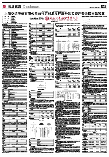 证券简称:交运股份 证券代码:600676 公告编号:临2011-011 上海交运股份有限公司向特定对象发行股份购买资产暨关联交易预案独立财务顾问:海通证券股份有限公司 2011-03-18 来源:证券时报网 作者:
