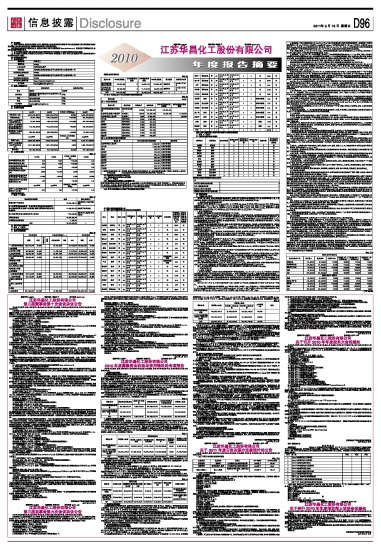 证券代码:002274 证券简称:华昌化工 公告编号:2011-006 江苏华昌化工股份有限公司2010年度报告摘要 2011-03-18 来源:证券时报网 作者: