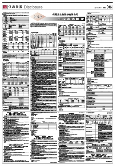 证券代码:002286 证券简称:保龄宝 公告编号:2011-008 保龄宝生物股份有限公司2010年度报告摘要 2011-03-18 来源:证券时报网 作者: