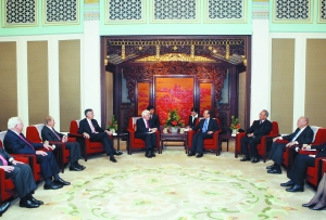 国务院总理温家宝昨日在会见出席“中美工商领袖和前高官首轮对话”美方代表时指出,当前世界经济正在缓慢复苏,仍面临许多不稳定、不确定因素。中美双方要本着建设性的态度,探讨开展大规模财政、金融、经贸合作的有效方式,为促进两国经济发展和世界经济强劲、可持续、平衡增长注入新的活力。 新华社/供图 本版导读: