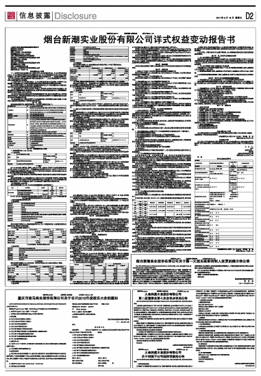 本公司及董事会全体成员保证公告内容的真实、准确和完整,对公告的虚假记载、误导性陈述或者重大遗漏负连带责任。 公司近日收到公司第一大股东烟台东润投资发展有限公司(以下简称“东润投资”)的通知,鉴于公司第一大股东东润投资实际控制人常宗琳先生已辞世,其持有东润投资51%的股份,并通过东润投资间接持有公司130,723,712股的股份(占公司总股数的20.90%);根据常宗琳先生生前于2009年8月20日订立的《遗嘱》及其继承人于2011年3月16日签署的《关于烟台东润投资发展有限公司股份之继承协议》,其持有的东润投资51%的股份全部作为遗产由其三位子女继承,即:DE CHANG先生继承31%、常环德女士继承10%、常晓女士继承10%;其夫人姜宗美女士自愿放弃继承上述股份。本次继承后,DE CHANG先生、常环德女士、常晓女士及其一致行动人姜宗美女士、宋向阳先生、李亚清先生等六人合计持有东润投资58.76%的股份,成为东润投资的共同控制人,并通过东润投资持有公司20.90%的股份,成为公司的实际控制人。 DE CHANG先生、常环德女士和常晓女士将于2011年3月18日公告《详式权益变动报告书》,敬请投资者关注。 提醒广大投资者注意投资风险。 特此公告。 烟台新潮实业股份有限公司 董 事 会 二O一一年三月十七日 本版导读: