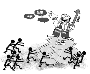 含碘食盐遭疯抢,卖断货且价格涨。 日本核泄有辐射,中国居民闹惊慌。 谣言惑众真歹毒,黑心牟利太猖狂。 监管部门要作为,稳定市场惩奸商。 赵乃育/画 孙勇/诗 本版导读: