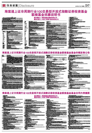 海富通上证非周期行业100交易型开放式指数证券投资基金联接基金基金合同内容摘要 2011-03-18 来源:证券时报网 作者: