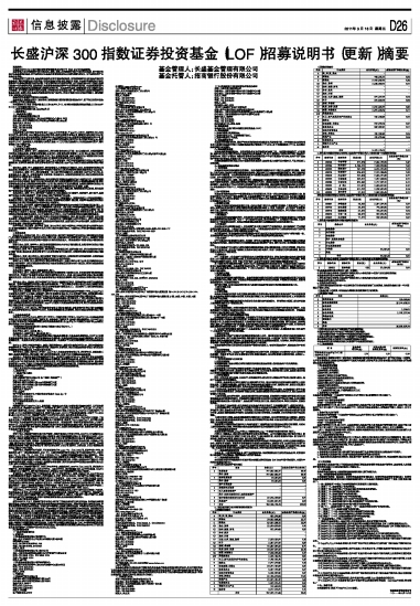 长盛沪深300指数证券投资基金(LOF)招募说明书(更新)摘要 2011-03-18 来源:证券时报网 作者: