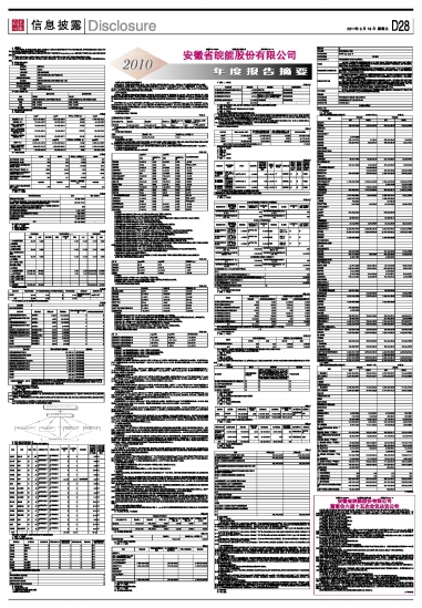 证券代码:000543 证券简称:皖能电力 公告编号:2011-5 安徽省皖能股份有限公司2010年度报告摘要 2011-03-18 来源:证券时报网 作者: