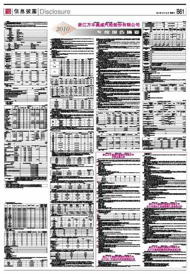 证券代码:002085 证券简称:万丰奥威 公告编号:2010-003 浙江万丰奥威汽轮股份有限公司2010年度报告摘要 2011-03-19 来源:证券时报网 作者: