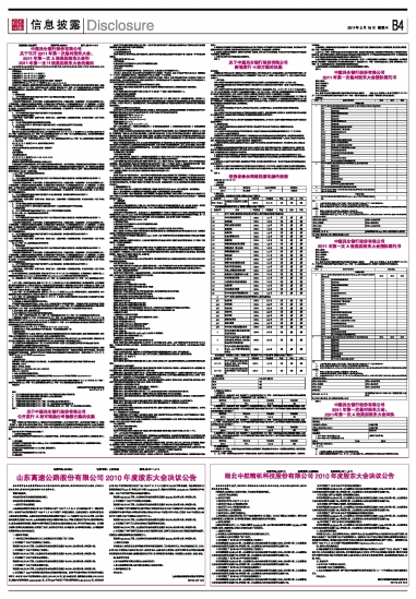 山东高速公路股份有限公司2010年度股东大会决议公告