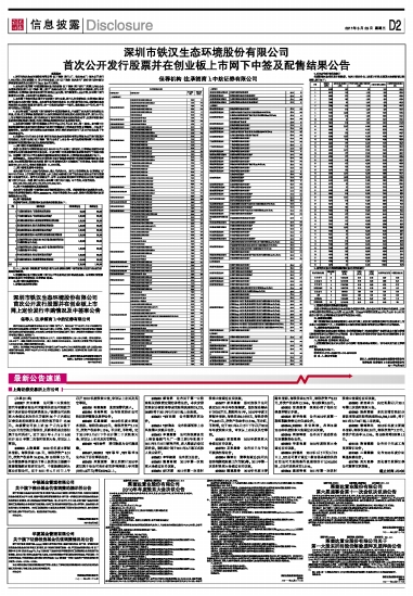 6、根据2011年3月18日公布的《深圳市铁汉生态环境股份有限公司首次公开发行股票并在创业板上市发行公告》(以下简称“《发行公告》”),本公告一经刊出即视同向网下申购获得配售的所有股票配售对象送达最终获配通知。