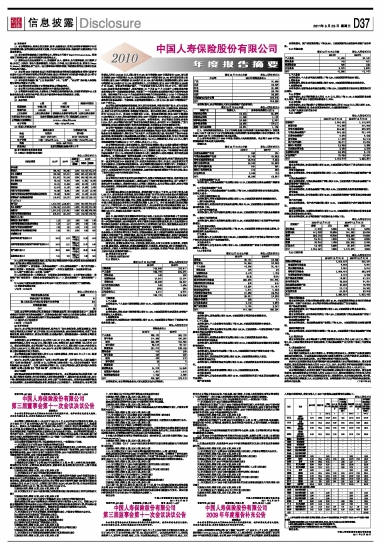 中国人寿保险股份有限公司2010年度报告摘要 2011-03-23 来源:证券时报网 作者: