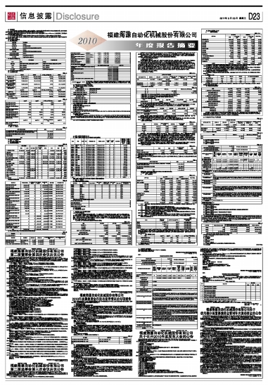 福建海源自动化机械股份有限公司公告(系列) 2011-03-23 来源:证券时报网 作者: