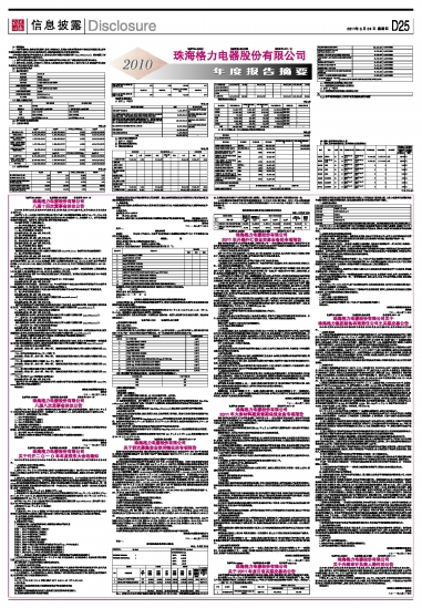 珠海格力电器股份有限公司公告(系列) 2011-03-24 来源:证券时报网 作者: