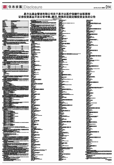 易方达基金管理有限公司关于易方达医疗保健行业股票型证券投资基金开放日常申购、赎回、转换和定期定额投资业务的公告