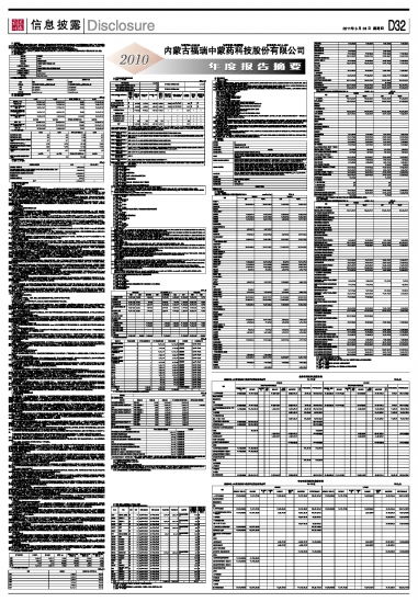 内蒙古福瑞中蒙药科技股份有限公司2010年度报告摘要