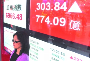 台湾当局20日晚宣布动用大额资金救市,并宣布自明年1月2日起开放大陆银行参股岛内银行及金控公司。受此利好影响,台股21日高开高走,收盘报6966点,上涨303点,涨幅4.56%。盘面上有3353家上涨,693家下跌,195家持平。(更多报道见A4版)IC/供图 本版导读: