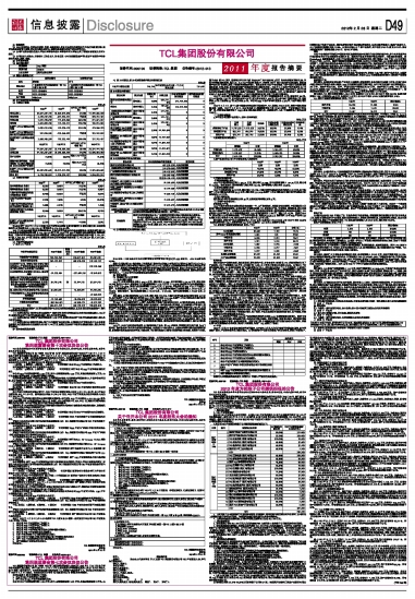 证券代码:000100 证券简称:TCL集团 公告编号:2012-013 TCL集团股份有限公司2011年度报告摘要 2012-02-28 来源:证券时报网 作者: