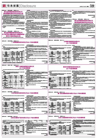江苏澳洋顺昌股份有限公司2011年度业绩快报